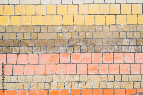 Obraz premium Old mosaic horizontal striped pattern, shabby small ceramic colorful decorative tiles