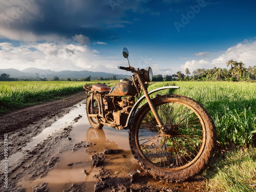 © Ali Saadat, Obraz premium old motorbike broken down