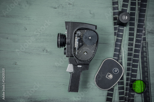 Fototapeta premium Old movie camera and film