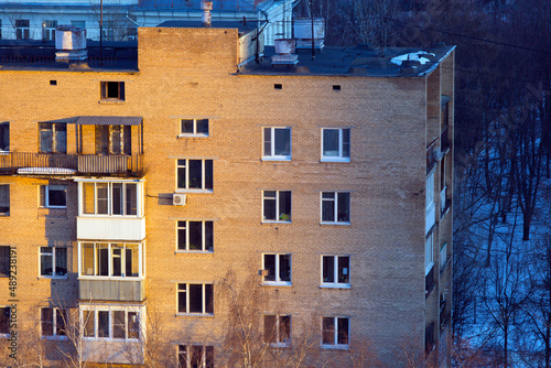 Fototapeta premium Old multi-storey residential building, sunset