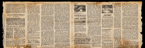 © Ilja, Obraz premium Old Newspaper Yellowed Textured Paper With Headlines and Columns from 1940s, Journalism Concept