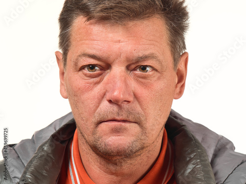 © makam1969, Fototapeta premium old not shaved man in glasses with facial expressions close-up