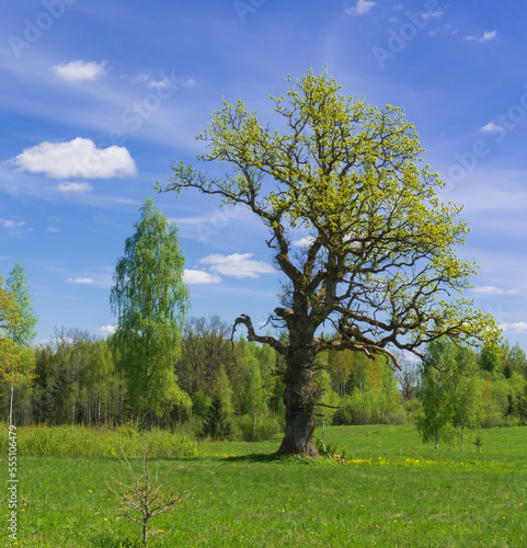© AGITA LEIMANE, Obraz premium Old oak tree on meadow.