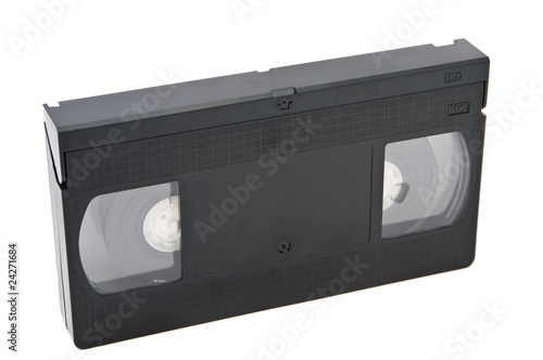 Obraz premium Old obsolete videocassette on white background