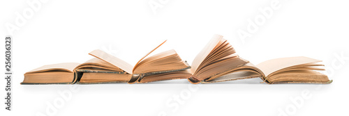 Fototapeta premium Old open books row isolated with clipping path
