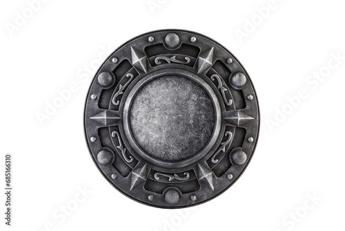© Jakub Krechowicz, Obraz premium Old ornamental round shield isolated on white background with clipping path