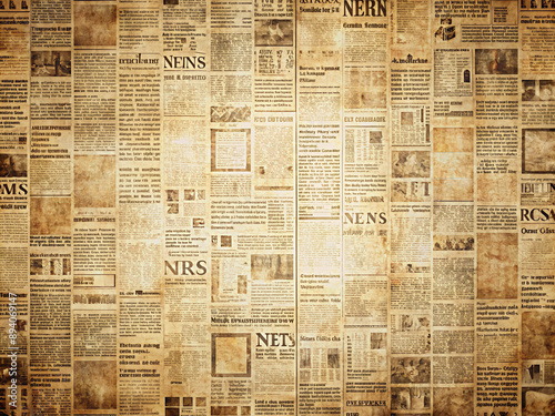 © Watcharakorn, Obraz premium old paper texture, OLD NEWSPAPER BACKGROUND, VINTAGE PAPER TEXTURE, TEXTURED NEWS PRINT PATTERN DESIGN WITH SPACE FOR TEXT, BLANK NEWSLETTER PATTERN