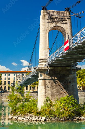 Fototapeta premium Old Passerelle du College bridge over Rhone river in Lyon, Franc