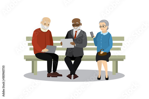 Obraz premium old people or pensioners sitting on bench