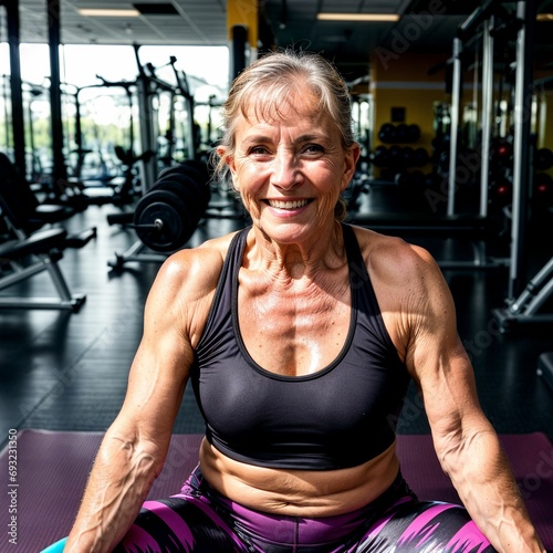 Obraz premium old person exercising sweating, elderly woman old lady who is buff and fit portrait living young and aging well as a senior citizen.