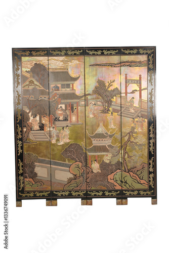 © Ash Editor , Obraz premium old photo frame with flowers Chinese Black Lacquer