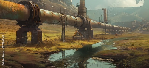 © STOCKYE STUDIO, Fototapeta premium old pipelines in an isolated setting with fields