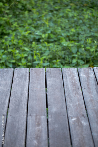 Fototapeta premium Old plank woods on green plant