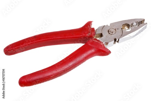 Fototapeta premium Old pliers with red handles, isolated on white background