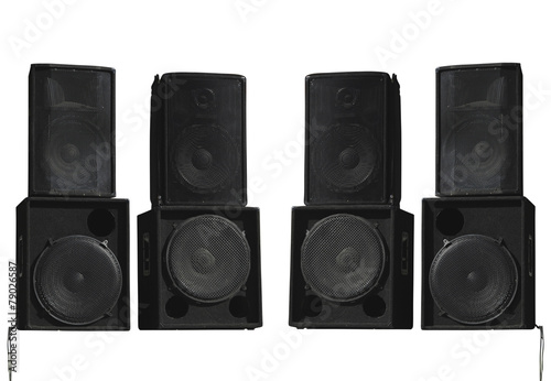 © alexrow, Fototapeta premium Old powerful stage concerto audio speakers isolated on white