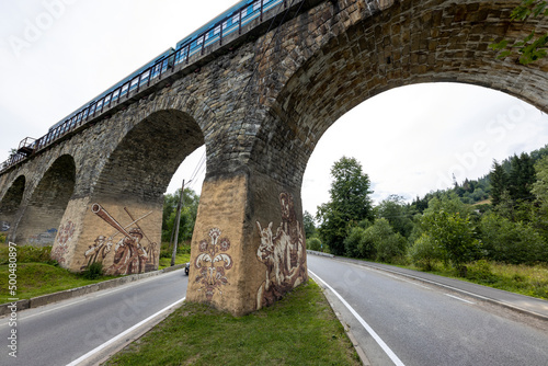 © Sergey, Fototapeta premium Old railway arch bridge. Panorama.