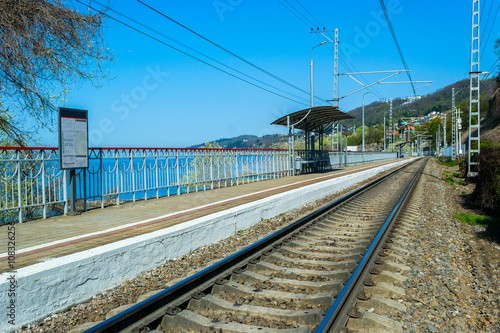 © binik, Fototapeta premium Old railway electric train station in Sochi, Russia
