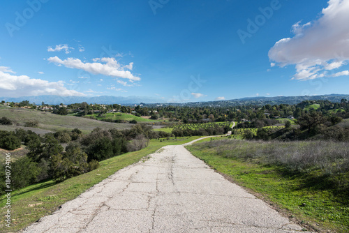 Naklejka premium Old ranch road leading to the San Fernando Valley in Los Angeles, California. Photograph taken at the Upper Las Virgenes Open Space Preserve.
