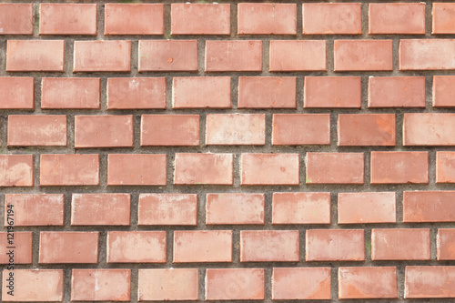 Fototapeta premium Old red brick wall background macro, selective focus.