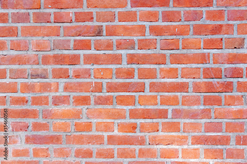 Fototapeta premium Old red brick wall. Bricks with individual texture with concrete layering .