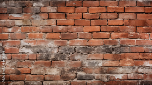 Fototapeta premium Old Red Brick Wall Texture, Rustic Background, Industrial Aesthetic with Copy...