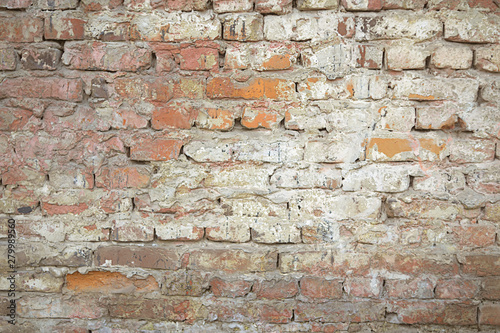 © issalina, Naklejka premium Old red brick wall with white paint background