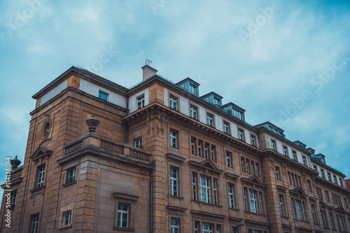 © Novanture, Fototapeta premium Old red colored stone building under clouds