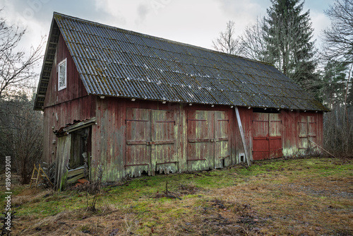 Obraz premium Old red wooden barn in Smaland, Sweden