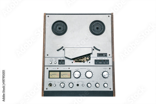 © pro2audio, Fototapeta premium Old reel tape recorder isolated on a white background