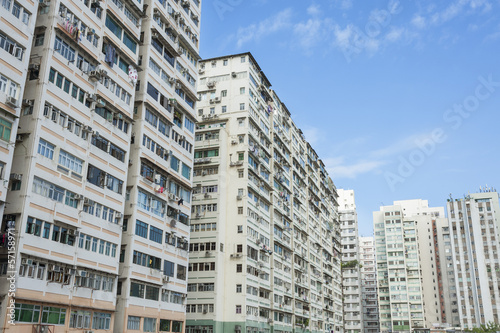© leeyiutung, Naklejka premium Old residential building in Hong Kong