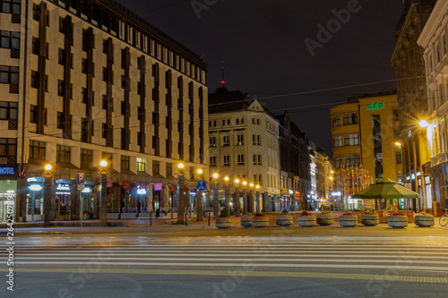 Fototapeta premium Old Riga the capital of Latvia at night. The business finance center of the...