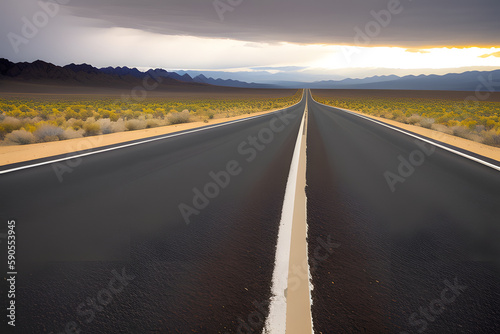 © Floor, Naklejka premium old road crossed by yellow line
