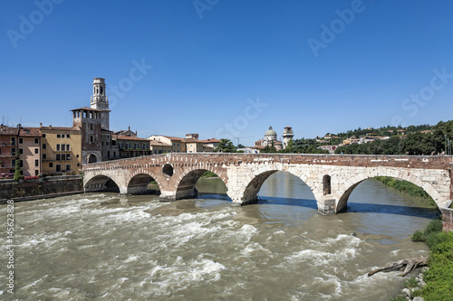 Fototapeta premium old roman bridge in Verona spans the river Etsch