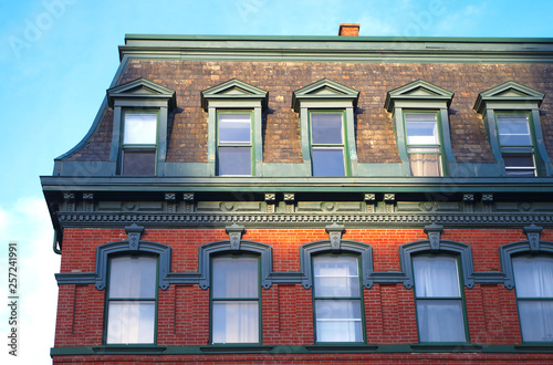 © Jacques Durocher, Obraz premium old roof architecture residential building apartment brick skylight