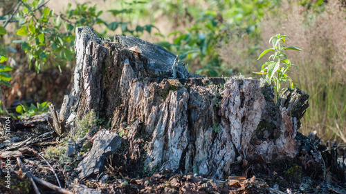 Fototapeta premium Old rotten gray stump in the forest