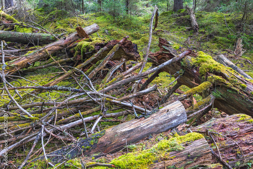 © Lars Johansson, Fototapeta premium Old rotting tree logs in an ancient forest