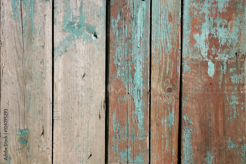 © sandipruel, Naklejka premium old rough scratched faded wooden board with boughs