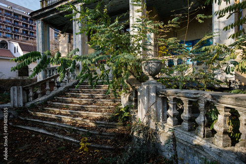 Fototapeta premium Old ruined abandoned overgrown mansion