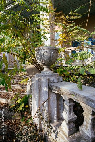 Fototapeta premium Old ruined abandoned overgrown mansion