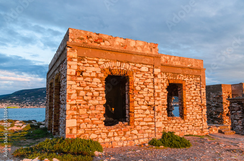 Fototapeta premium Old ruins on the island of Paros during sunset. Cyclades, Greece