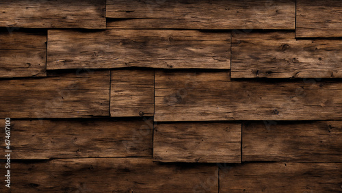Naklejka premium Old rustic wooden wall. Rough mosaic wall made of uneven boards. Wood...