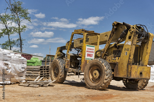© annie1961, Obraz premium Old rusty forklift on construction site