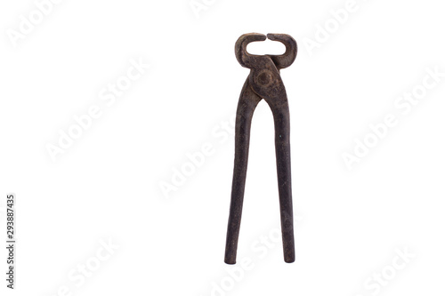 Fototapeta premium Old rusty pliers isolated on a white background close-up.