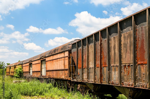 © dbvirago, Fototapeta premium Old Rusty Train Cars Curving