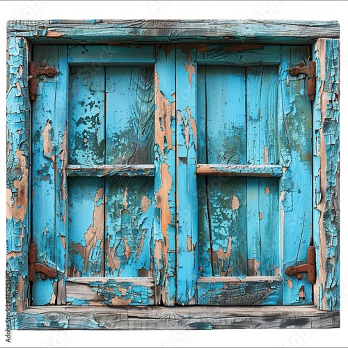 © ArtmediaworX, Naklejka premium old rusty wooden colorful window frame isolated on white background. Ai generative