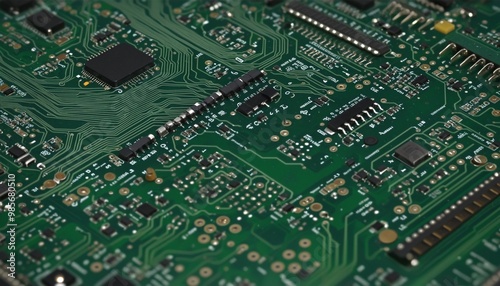 © Random_Mentalist, Obraz premium Old schema computer, retro electronic circuit board background texture