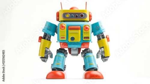Fototapeta premium Old-school robot toy with bright colors and vintage features isolated on...