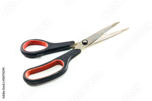 © osabee, Obraz premium old scissors on white background.