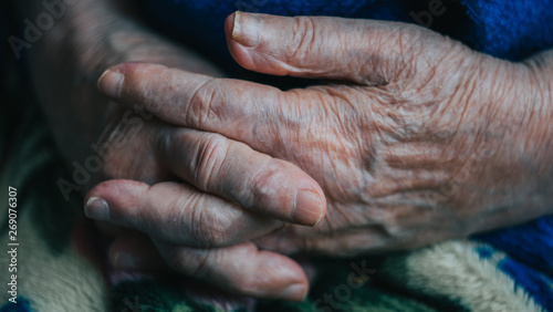 Fototapeta premium old senior woman hands with veins. risk group coronavirus or covid virus. risk group coronavirus or covid virus