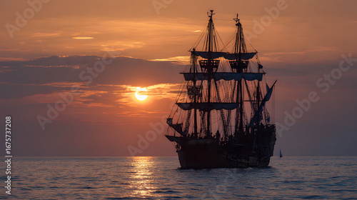© Daniel, Fototapeta premium old ship in sea sunset